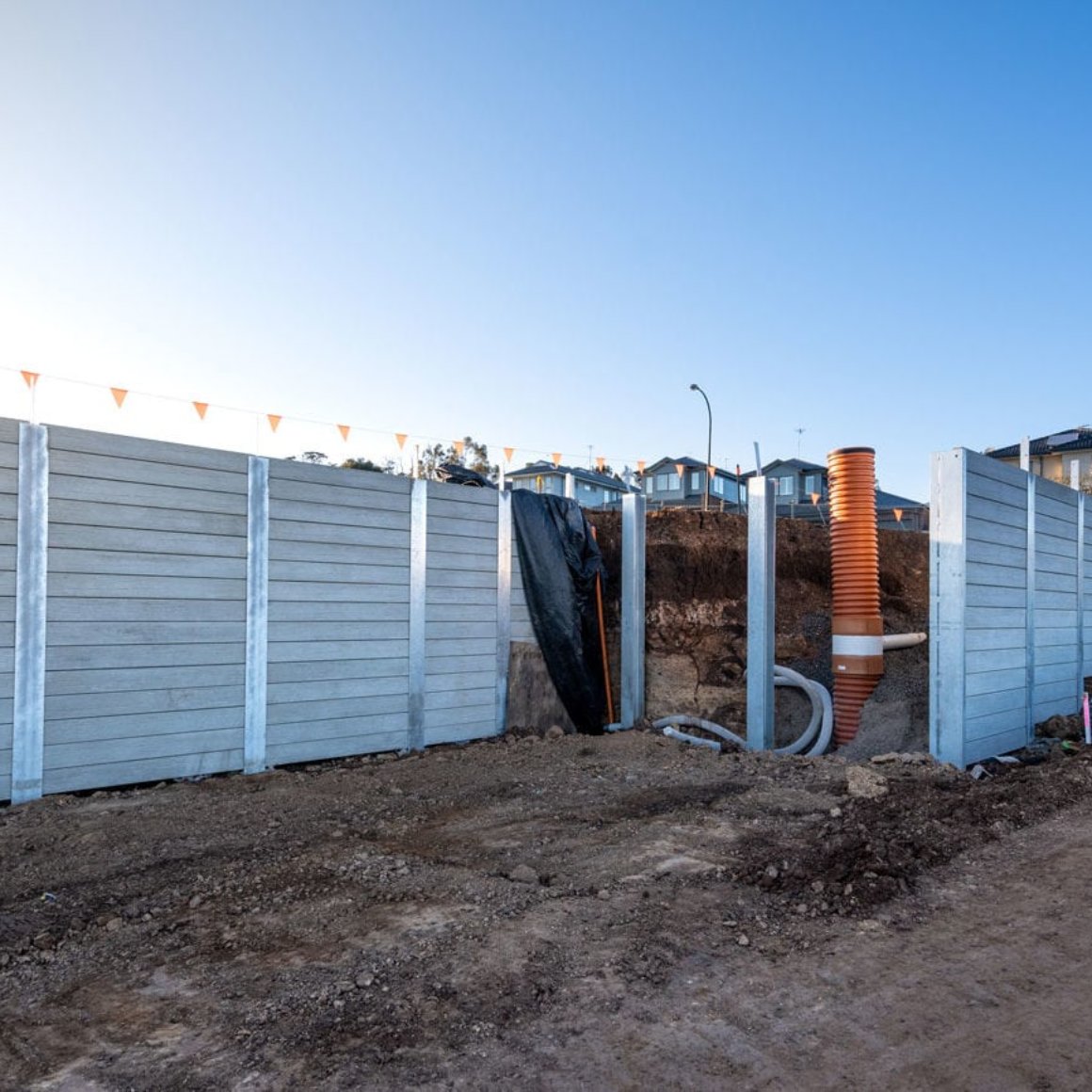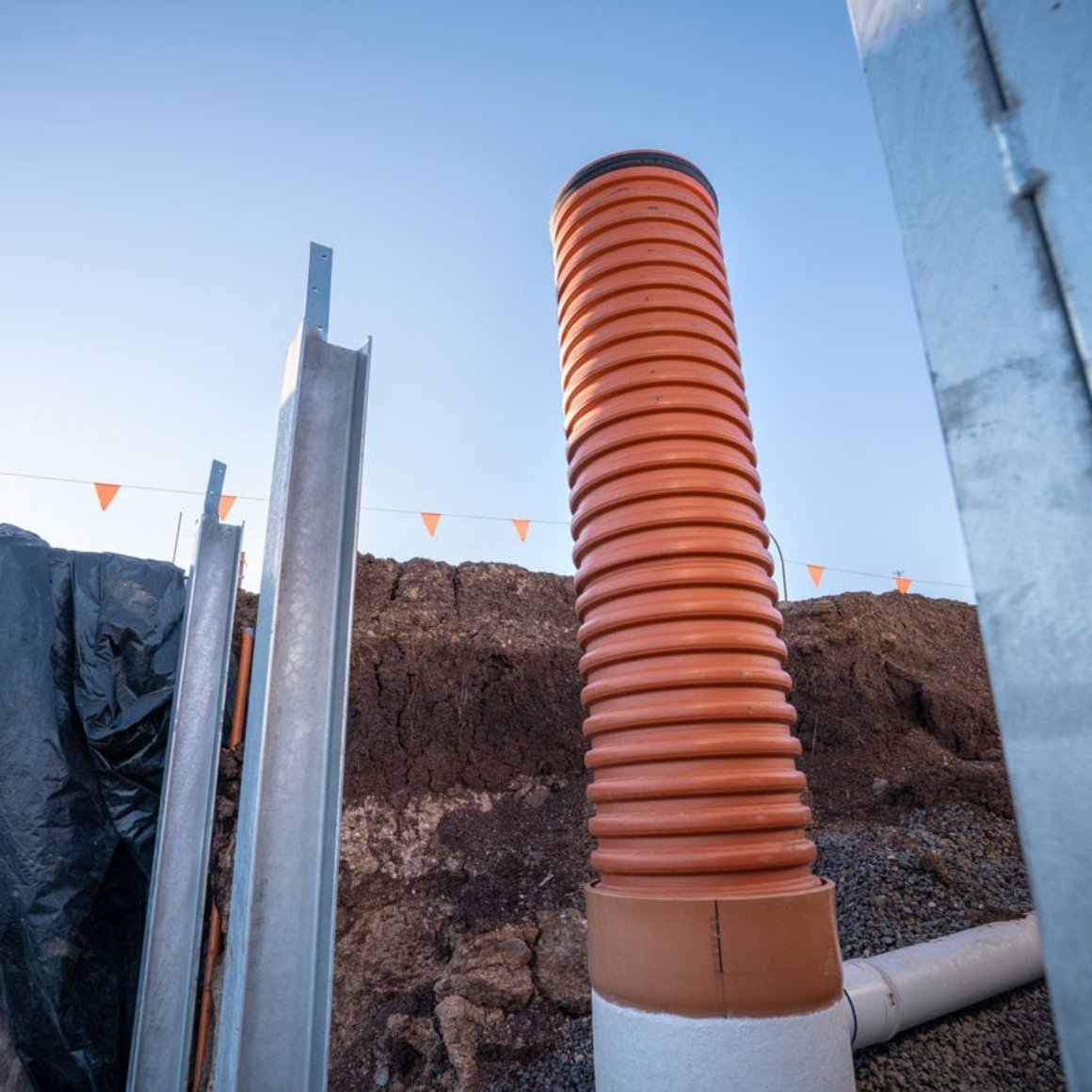 With well planned positioning of the sewer grade PVC pipes, we were able to reduce the pipe lengths connecting to the two main sewer maintenance holes. Through this planned placement, reducing the amount of material used overall lead to a reduction of cost whilst successfully maintaining services to all lots on the Belleview site.