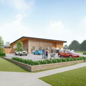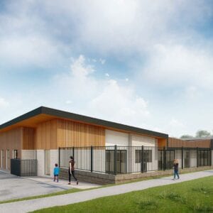 Cornhill Road is a large childcare facility of 5 separate learning rooms, with split roof design and architctural facades.