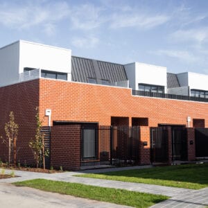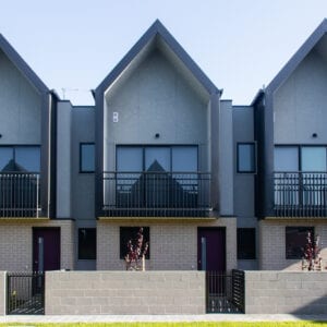 Each townhouse has a lounge area opening onto natural ground level, with its own private courtyard and garage. Angled walls and roof structures form some of the features of the townhouses. There is a high level of framing involved in the design and construction of this project to suit the architectural intent. G&P have successfully detailed and documented all the framing necessary to support the roof, angled walls, ceilings, and facades of the built form.